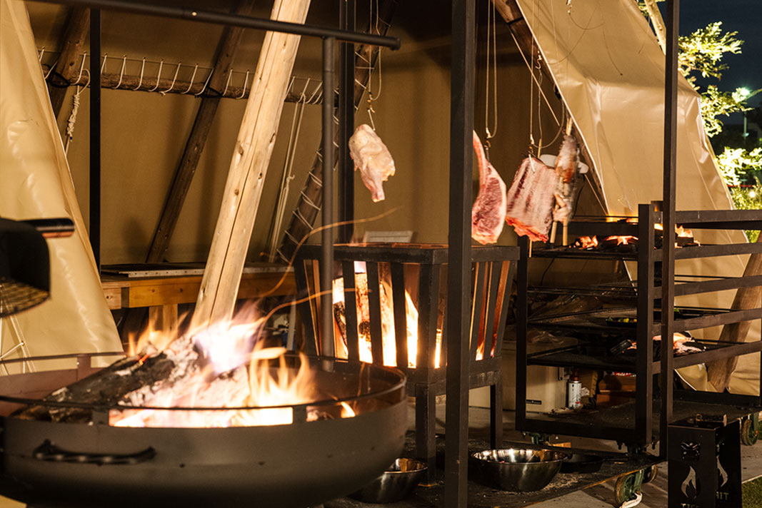 A French cuisine chef who is a glamping master offers a dynamic BBQ gourmet with a focus on ingredients from Omi.