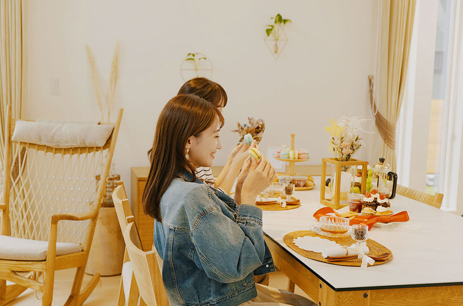 The stylish space where you can relax without being pretentious is perfect for girls’ trip. Relax, chat, and eat at your leisure - you can spend time as if you were in a cafe with your favorite people. You can also enjoy baking sweets and bread with the pre-equipped facility.