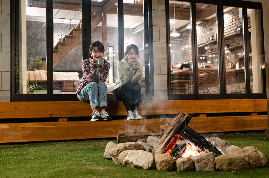 You can experience various activities including woodchopping and making bonfires with our special camping gear. Relax and enjoy yourself in the beautiful atmosphere created by the bonfire.